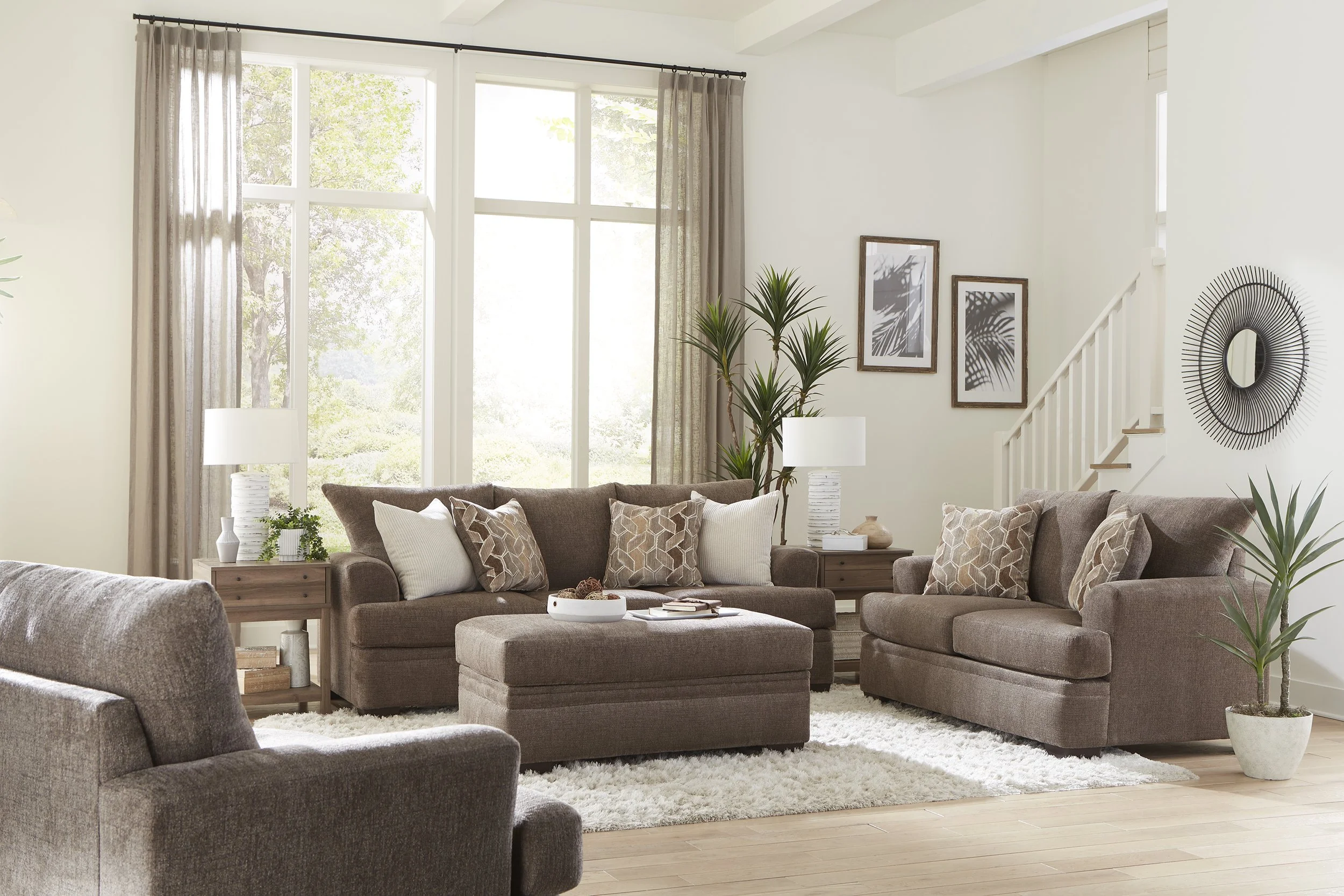 Elevate your living room's aesthetic with our stunning 3650 Living Room Sofa, where modern elegance meets timeless design. Adorned with four designer accent pillows, this sofa effortlessly enhances your decor with a touch of sophistication and comfort. The unique shark fin arms add a modern twist to its classic silhouette, while meticulously stitched seams and a banded front rail showcase impeccable craftsmanship. Upholstered in a fabric that showcases a striking interplay of textures. Redefine your living space with this exceptional piece, where comfort meets enduring style, promising a harmonious blend of relaxation and sophistication in your home.
